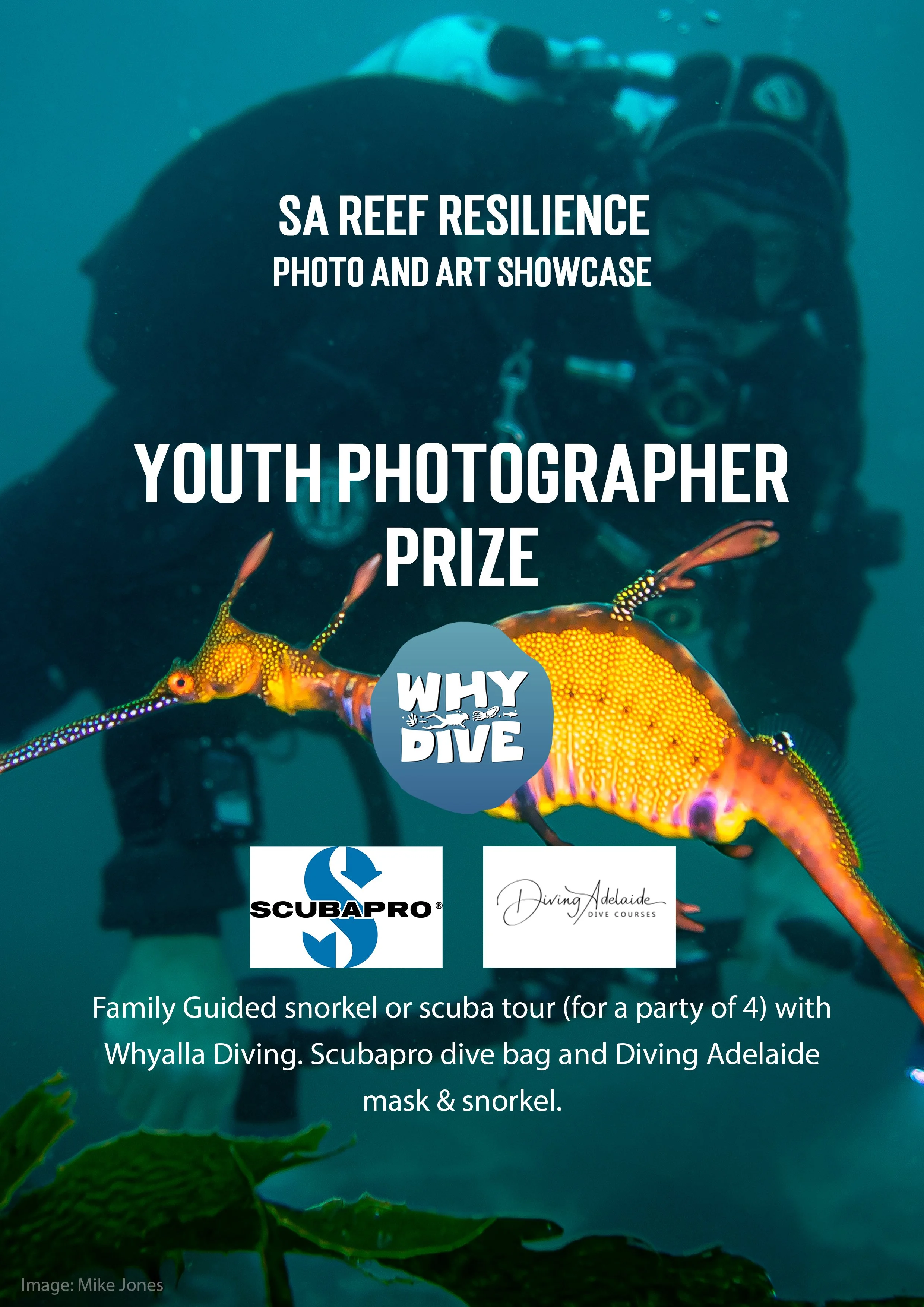 $500 Country Getaways Yorke Peninsula accommodation voucher, Scubapro travel bag, Diving Adelaide mask and snorkel, plus an Amok Island Limited Edition Great Southern Reef print.5. Youth Photographer