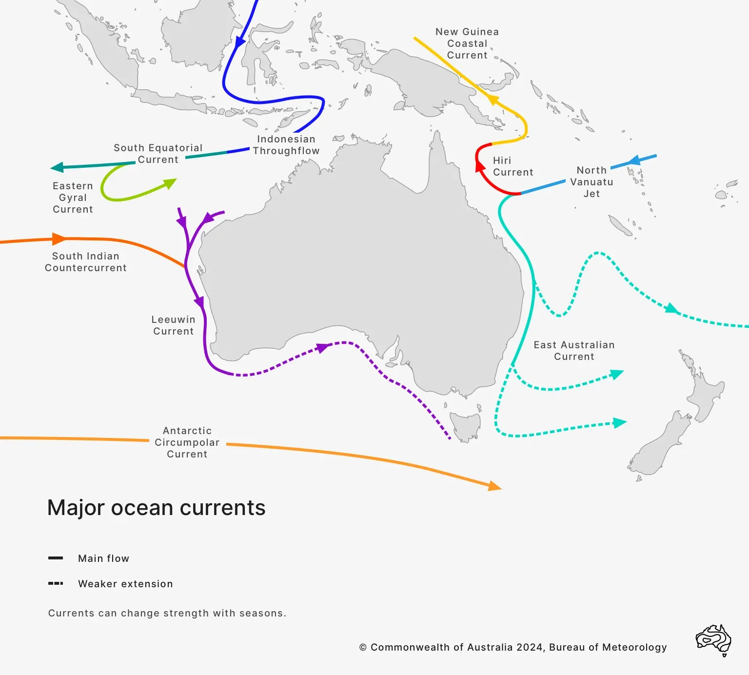 o Explain how ocean currents influence the distribution of marine species along Australia’s coastline.