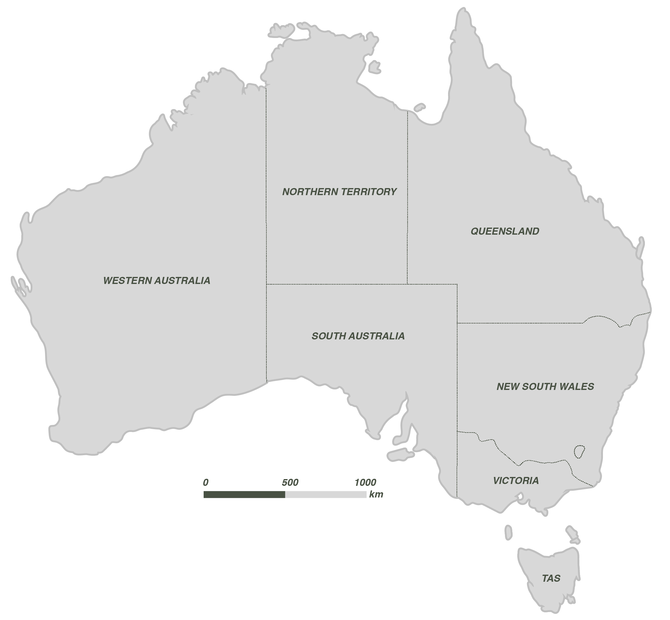 6. Conduct research and, using the map of Australia below (click here for the Google sheet), shade the following areas in two distinct colours: